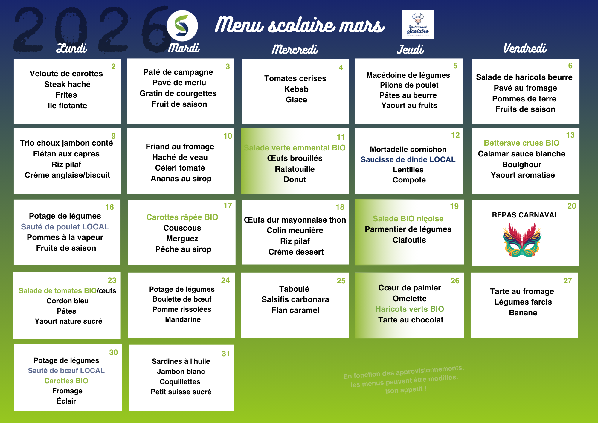 jeudi : 8h30 | 12h et 13h30 | 19h